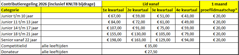 U betaald als lid van Tennisvereniging Puttershoek jaarlijks contributie. In het bedrag van de contributie is tevens de verplichte bijdrage aan de KNLTB begrepen. Wordt u lid tijdens het lopende seizoen, dan betaald u alleen voor de kwartalen waarin u lid bent in het eerste seizoen.